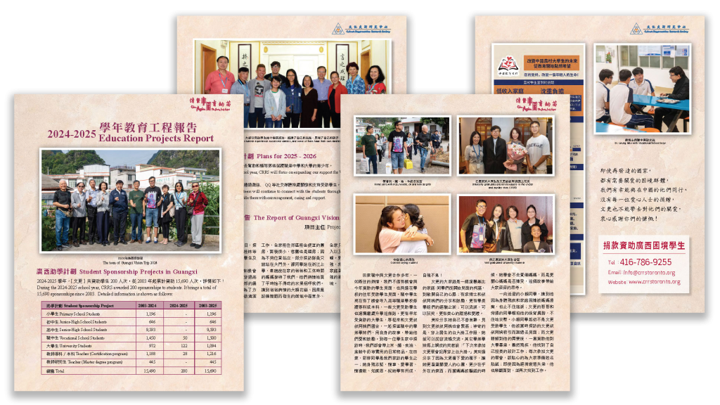 詳情請瀏覽網頁:crrstoronto.org,或致電熱線 416-786-9255。懇請您慷慨解囊,盡快行動,將捐款寄給我們,支持及幫助孩子繼續上學!願上帝祝福你!